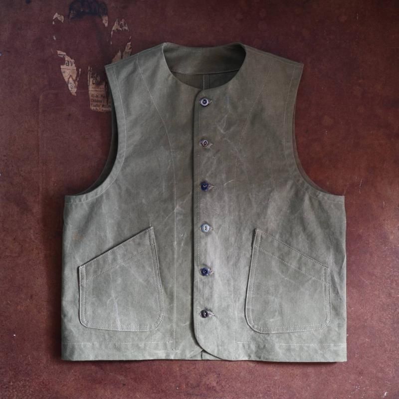 WW2時代にも使われていたアメリカ軍のシェルターハーフテント(通称パップテント)を使用してベストを製作しました。